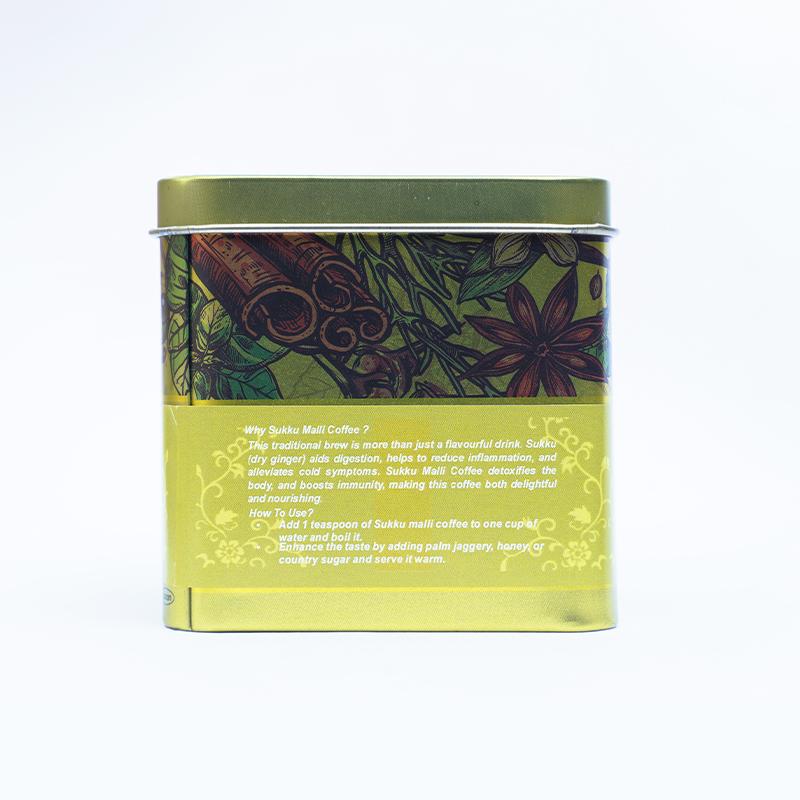 Sukku Malli Coffee is a traditional beverage known for its aromatic and health-boosting properties. The first sip of Sukku Malli Coffee introduces a delicate yet vibrant blend of spicy and sweet flavours. The dry ginger imparts a comforting heat, which is elegantly mellowed by the subtle citrus undertones of coriander seeds. The palm jaggery enriches the mix with its rich, molasses-like sweetness, creating a harmonious blend that makes the heart grow fonder