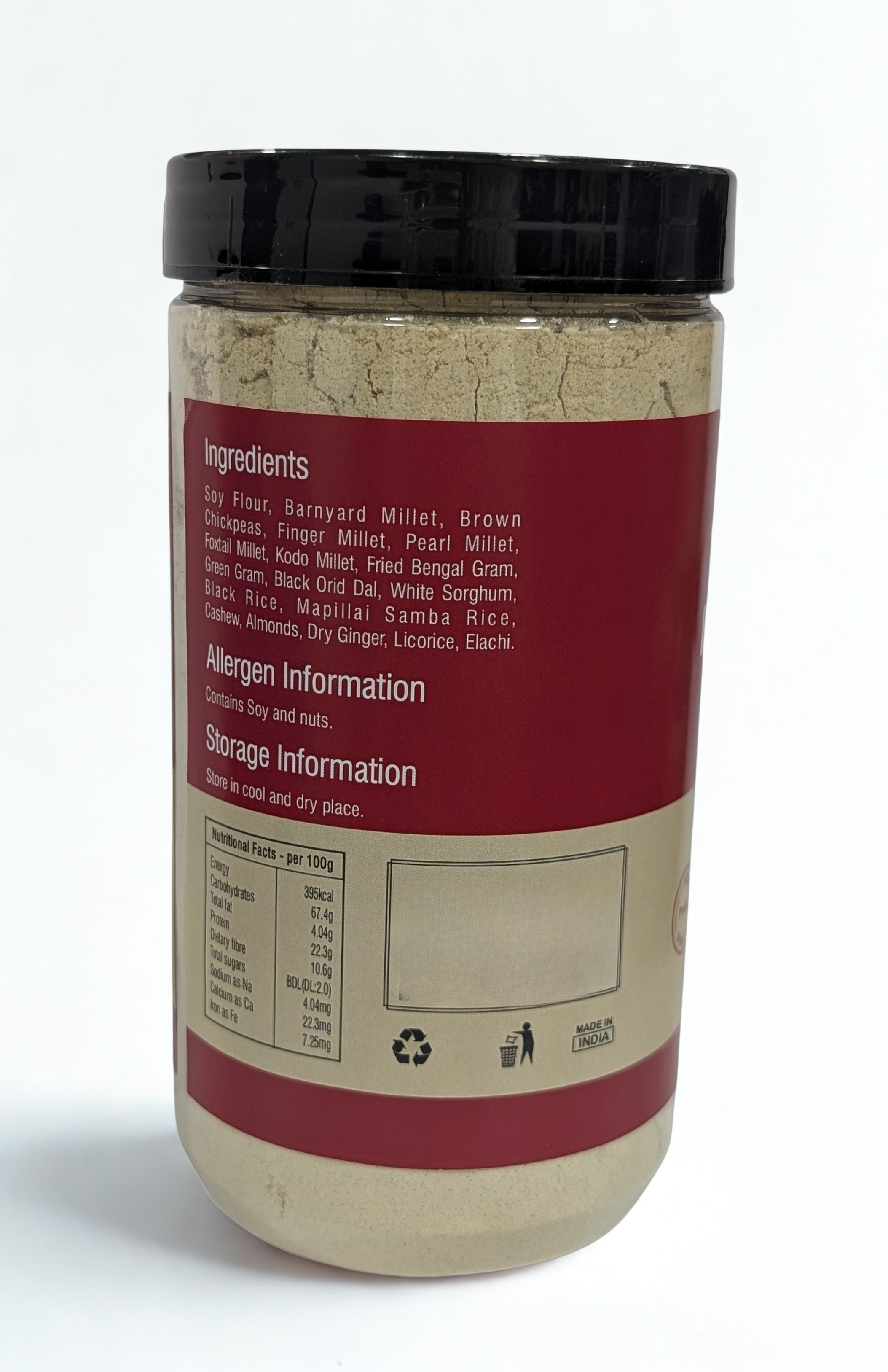 Made with a carefully balanced combination of millets, legumes, and natural ingredients, it offers essential nutrients, dietary fiber, and long-lasting energy in every spoonful. Whether you're looking to build strength, manage weight, or simply enjoy a wholesome start to your day, this mix delivers both taste and nutrition — without any additives or artificial flavors.